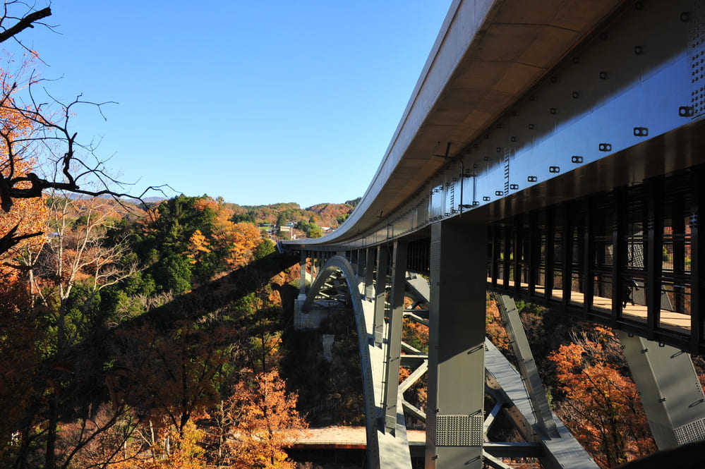 天龍峡の風景に自然と溶け込む姿は、信濃の橋百選に選ばれています。