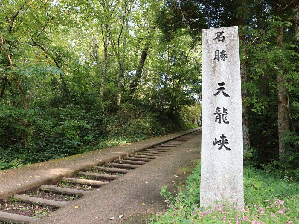 天竜川が長い年月をかけてつくりあげた自然の姿を一望できます。かつてはこの景色を眺めにしばしば龍が訪れたそうです。