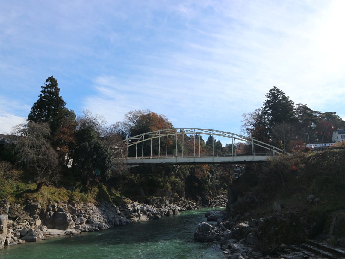 天龍峡の風景に自然と溶け込む姿は、信濃の橋百選に選ばれています。